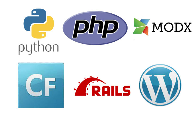 PHP, ColdFusion, Ruby-on-Rails, Python, MODX, WordPress